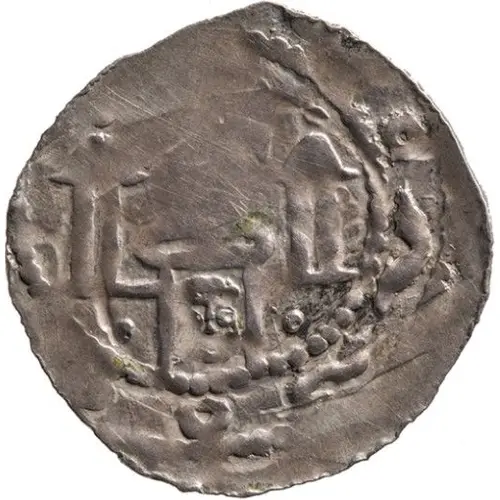 | Obverse description | Architecture with two side towers. Between them, an unidentifiable object on a pedestal (a hand?). Below, a square gate containing a frontal head. A ring on each side of the gate. Outside, a deceptive inscription between two beaded circles. |
