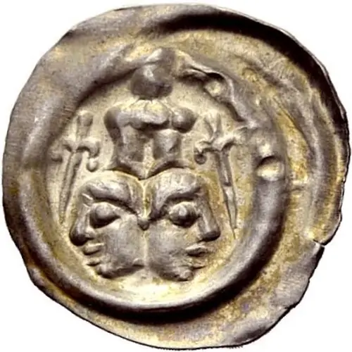 | Aversbeschreibung | Janus head under tower gate between daggers. |