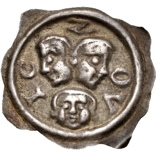 | Popis líce | Janus head above, head of St. Mauritius below facing forward, all within circle. |