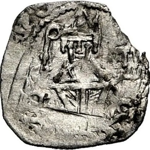 | توضیحات روی سکه | Remnants of inscription, bishop with crozier and book. |