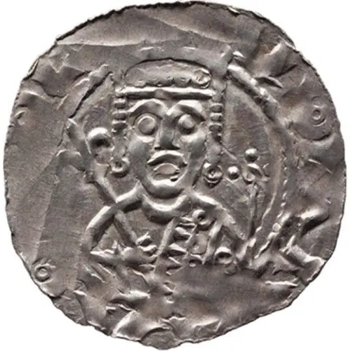 | Descrição do anverso | Royal bust, holding a line scepter in his right hand and a cross-staff in his left. A beaded circle and a deceptive inscription border surround the outside. |
