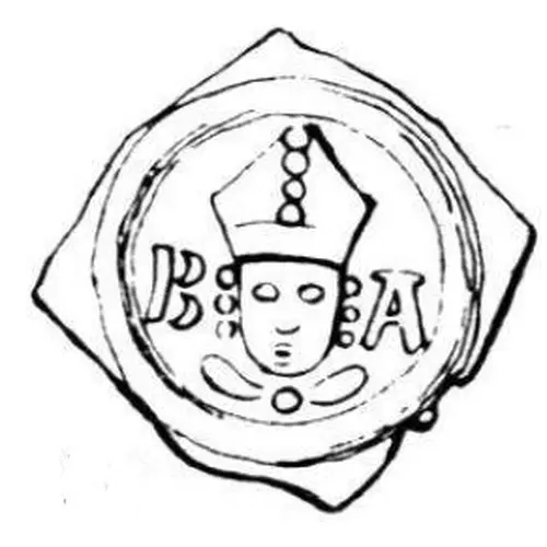 | Obverse description | Mitred bust of the bishop facing. Three pearls on the mitre. Letters B A in fields. |