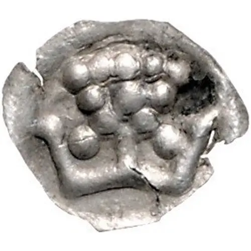 | Description de l’avers | Crown with peacock tail feathers and two large dots. |