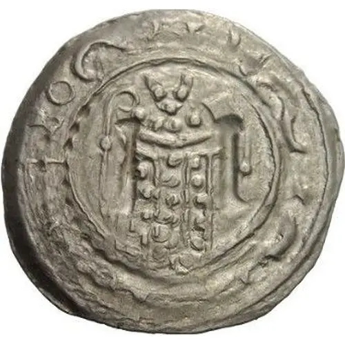 | Obverse description | A broad, angular bust of a bishop with crosier and book, the robe decorated with three vertical rows of dots. |