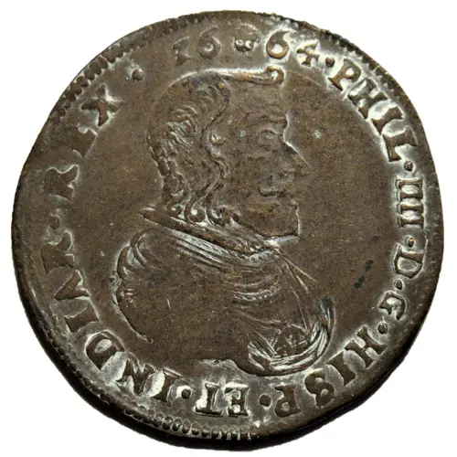 | Obverse lettering | PHIL•IIII•D•G•HISP•ET•INDIAR•REX• 16 64• (Translation: Philip 4 by the grace of God, King of the Spain and the Indies. 1664) |
