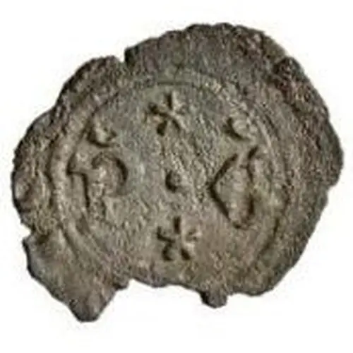 Descrizione del dritto Initials separated by stacked star / pellet / star, in reeded inner circle.