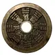 The Chinese `bagua` is depicted around the central hole. These are the eight elements of Chinese mythology written in Mandarin, accompanied by corresponding trigrams. |