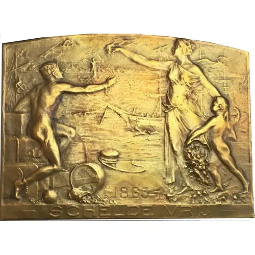 1913 50e ANNIVERSAIRE // DE L`AFFRANCHISSEMENT // DE L`ESCAUT // 20 JUILLET 50e VERJAHRING // VAN DE VRIJMAKING // DER SCHELDE // 20 JULI CHAMBRE DE COMMERCE D`ANVERS // HANDELSKAMER VAN ANTWERPEN // FÉDÉRATION MARITIME D`ANVERS |
