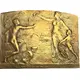 Mercure standing next to female allegorical figure of city next to angel, ship in background. |