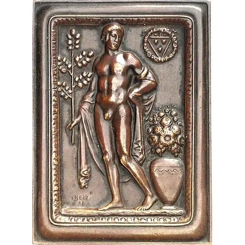 | Obverse description | Standing nude male figure turned left holding a laurel branch in the right hand, at the bottom right a vase with flowers. |