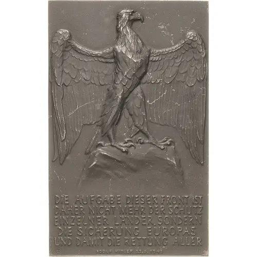 Obverse lettering DIE AUFGABE DIESER FRONT IST DAHER NICHT MEHR DER SCHUTZ EINZELNER LÄNDER, SONDERN DIE SICHERUNG EUROPAS UND DAMIT DIE RETTUNG ALLER ADOLF HITLER 22. 6. 1941 FH