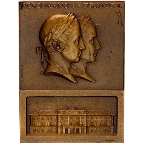 | Reverse lettering | 1835 - 1935 VOR HUNDERT JAHREN WURDE UNTER DER REGIERUNG DES KAISERS FERDINAND I. MIT DEM VOM KAISER FRANZ I. ANGEORDNETEN NEUBAU DES MÜNZEGEBÄUDES BEGONNEN |