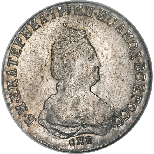 | Opis líce | Б•М•ЕКАТЕРИНА•II•IМП•ИСАМОД•ВСЕРОС• СПБ (Translation: Abbreviated By the grace of God, Catherine II, All-Russian empress and autocrat SPB) |