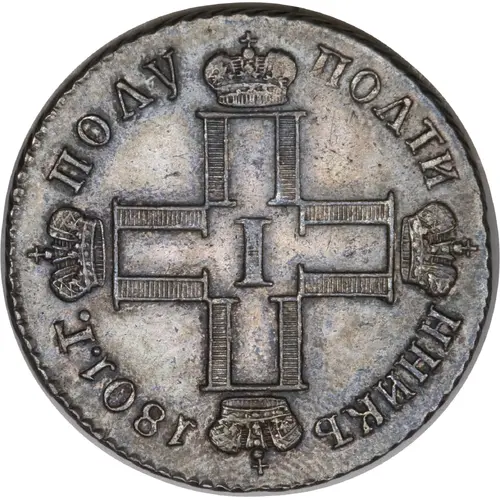 | Obverse lettering | ПОЛУ ПОЛТИ ННИКЪ 1801.Г. (Translation: Polupoltinnik) |
