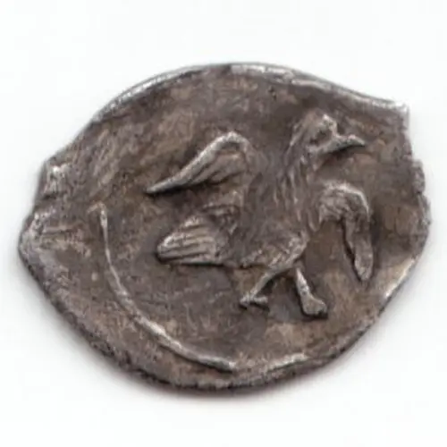 | Descrição do anverso | Bird to the right with outstretched wings, in a solid circle is a |
