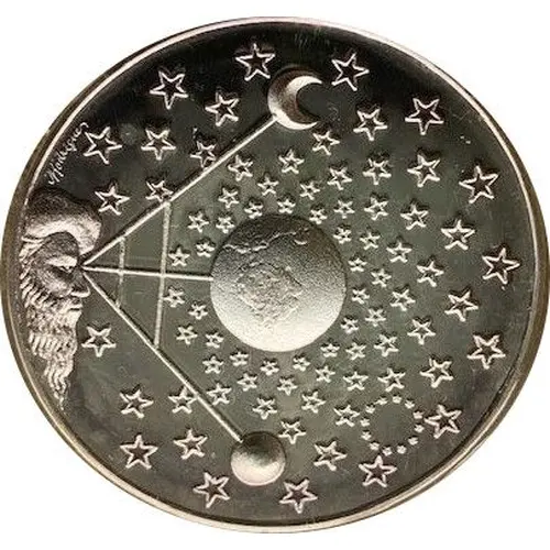 | Obverse description | Navigator observing the outer space populated by stars, pointing the crossbow to the trinomial Sun, Earth, Moon. |