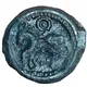 توضیحات پشت سکه Horse left within circle of pearls and lines, the pearl-shaped mane transitions into a ring structure (in the shape of a 9) with a central point (symbolizing the rider).