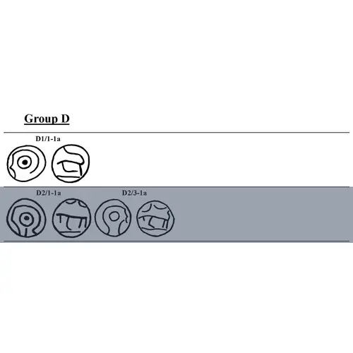 | Obverse description | Linear head left with eye ring and pellet, no neckline. |