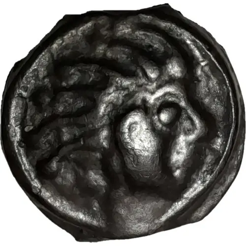 | Obverse description | Strongly stylized `Indian` head right, hair pulled back; the eye is globulated; semicircle on the cheek. |