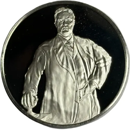 | نوشتههای پشت مدال | THE OFFICIAL PRESIDENTIAL PORTRAITS THEODORE ROOSEVELT 26TH PRESIDENT FM |