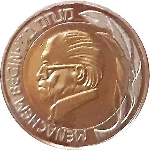 | Obverse lettering | מנחם בגין MENACHEM BEGIN |