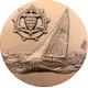 | Reverse description | Crowned coat of arms over anchor and ships wheel, sailing boat below left in wavy seas. |