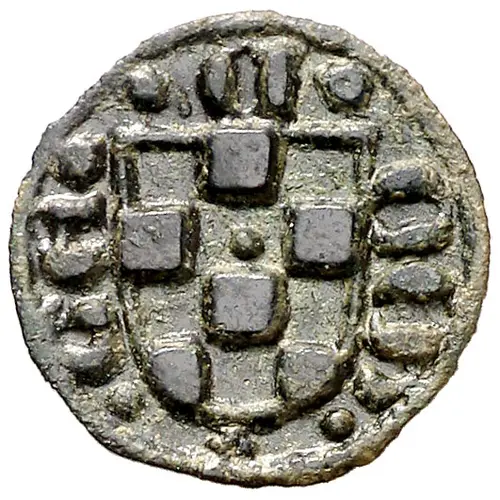 | Obverse description | Checkered shield with rounded tip. Legend around. |
