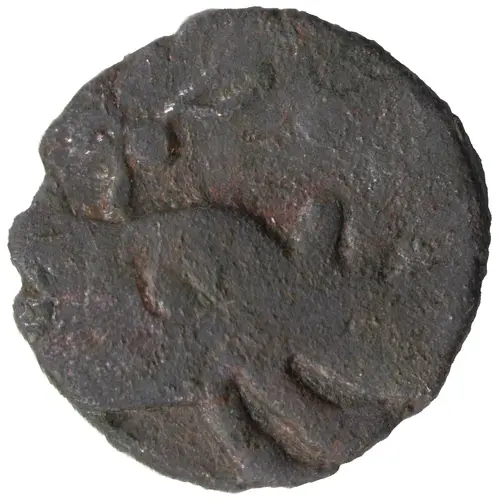 | Obverse description | Crude figure of Rhinoceros right, floral ornament above. |
