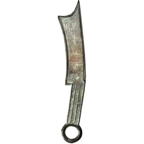 | Arka yüz açıklaması | Various Chinese ideograms on the blade with three horizontal lines near the tip. |