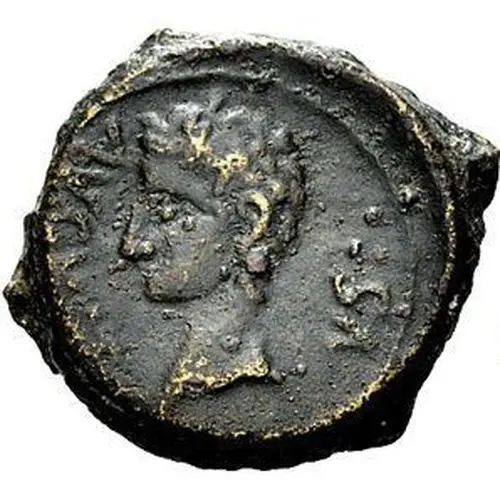 Obverse description Bare head of Augustus left.