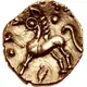 | Reverse description | Horse stepping left; acorn-like object below. |
