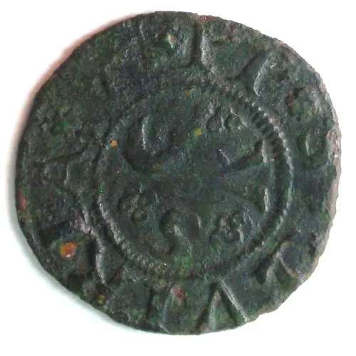 Obverse description Letters CVS in triangle around a little globe. CVS stands for the last three letters of S. QVIRIACVS. In the outer circle: PP*S*QVIRIA