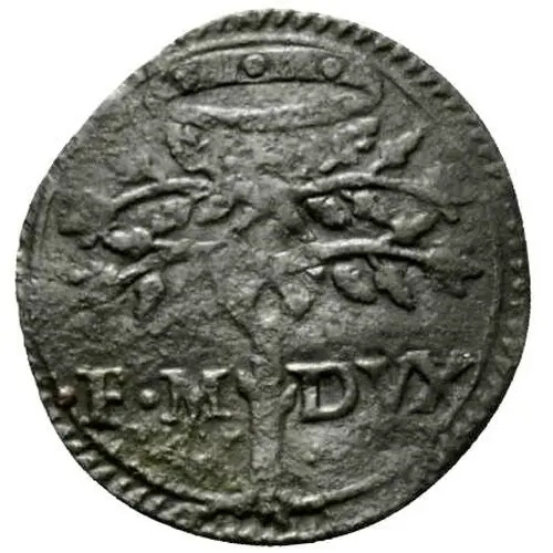 | Obverse description | Crowned oak tree (della Rovere arms) with interwoven branches intersecting horizontal legend. |
