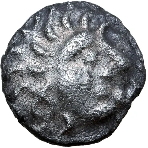 | Descrição do anverso | Celticised male head to right with long and wildly waving hair. |
