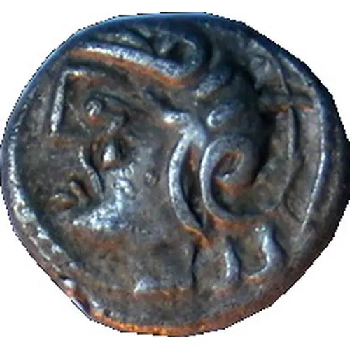 | Obverse description | Helmeted head facing left, beaded circle. |