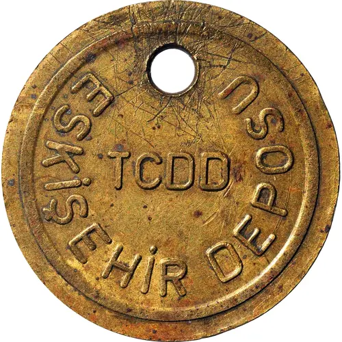 | Obverse description | Token issued for Turkish railways Eskisehir factory and repair shops for tools and machine parts removed from the depot areas. |