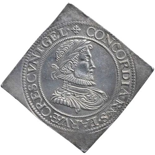| Reverse description | Bundle of arrows surrounded by the coats of armor of the six provinces (starting at 1 o`clock: Gelre, Flanders, Holland, Zeeland, Utrecht, Friesland). |