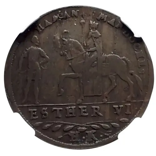 | Obverse lettering | HAMAN MARDOCHE ESTHER IV H.K. |