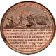 Three ships engaging with coastal fortification. |