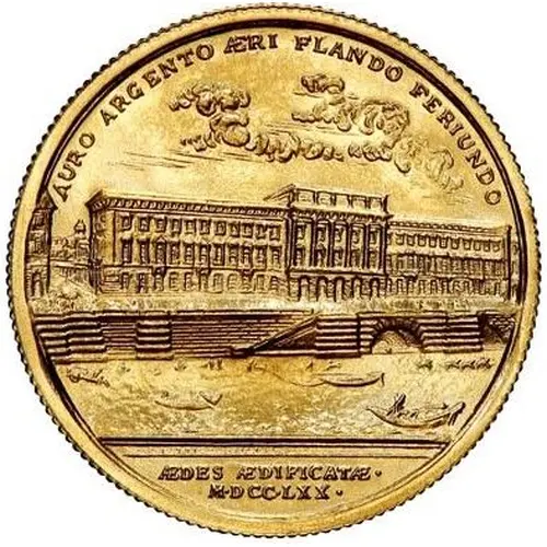 AURO ARGENTO ÆRI FLANDO FERIUNDO CN ROETTIERS FILIUS F. ÆDES ÆDIFICATAE . M.DCCLXX . |