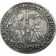 Lion of Saint Mark on the left, holding the sword vertically with the serpent wrapped around the blade. A castle on the right and a galley at sea on the left. |