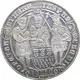 The Three Magi, Caspar, Melchior, and Baltasar, standing facing, heaching holding lis-tipped scepter, around coat-of-arms |