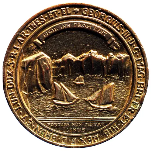 | Reverse lettering | THIS IS A REPLICA OF THE GREAT SEAL OF THE ISLAND OF CAPE BRETON AUTHORIZED 21 FEB 1785 AND USED UNTIL ANNEXATION TO NOVASCOTIA 16 OCT 1820 NO1 OF A SERIES |