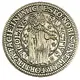 St. Nicholas of Myra standing, with miter and crosier, holding in his left hand three golden apples. Circular legend in Latin. |