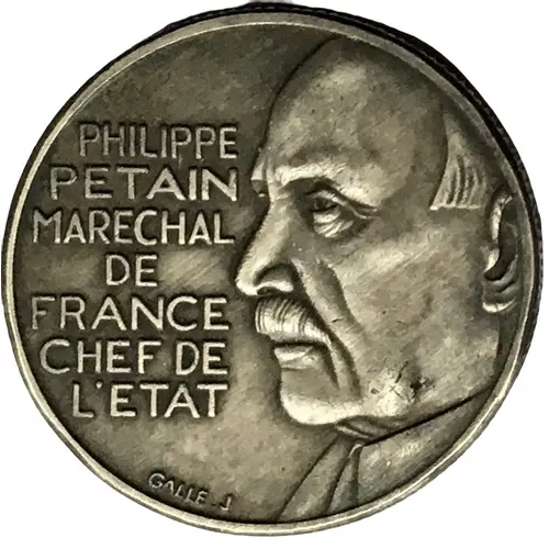 | Obverse lettering | PHILIPPE PETAIN MARECHAL DE FRANCE CHEF DE L’ETAT GALLE J |