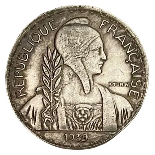 Obverse lettering REPUBLIQUE - FRANÇAISE P. TURIN 1939