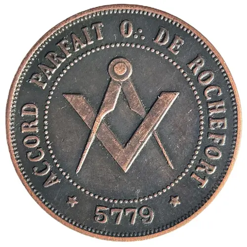 | Obverse lettering | ACCORD PARFAIT O.·. DE ROCHEFORT ★ 5779 ★ |