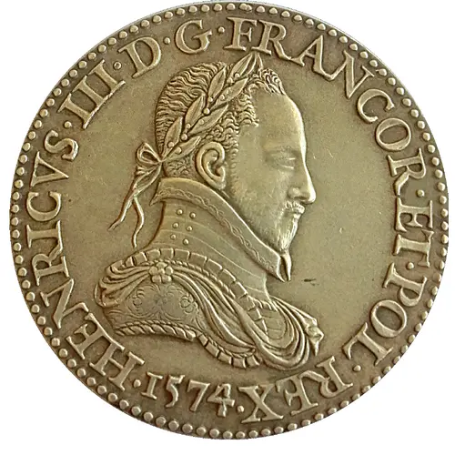 | Opis awersu | Bust turned to the right, crowned with laurel and clad in armor of Henry III. |