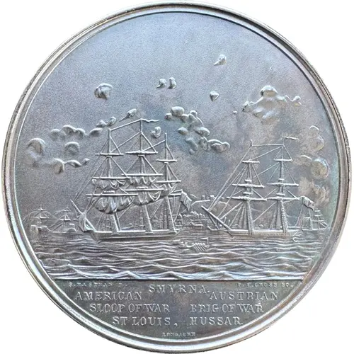 PRESENTED BY THE PRESIDENT OF THE UNITED STATES TO COMMANDER DUNCAN N. INGRAHAM AS A TESTIMONIAL OF THE HIGH SENSE ENTERTAINED BY CONGRESS OF HIS GALLANT AND JUDICIOUS CONDUCT ON THE 2D OF JULY 1853. JOINT RESOLUTION OF CONGRESS AUGUST 4TH 1854. |
