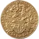 | Reverse description | Shielded 4-fold coat of arms surmounted by two helmets, with two deer supporters to sides. |
